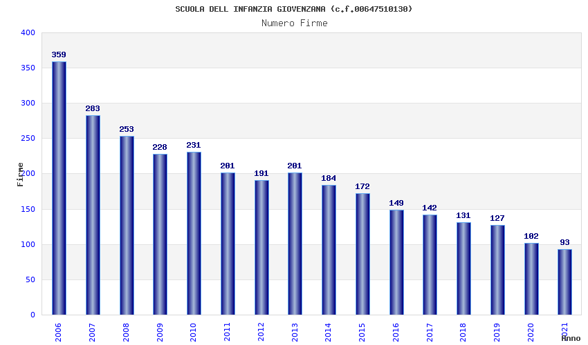 | Anno | Firme | Importi | Media | Naz. | Reg. | Prov. | Comu. |