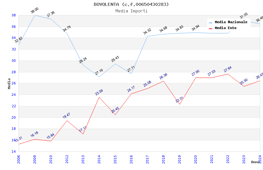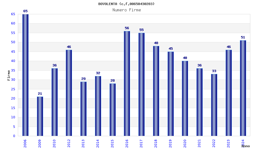 | Anno | Firme | Importi | Media | Naz. | Reg. | Prov. | Comu. |