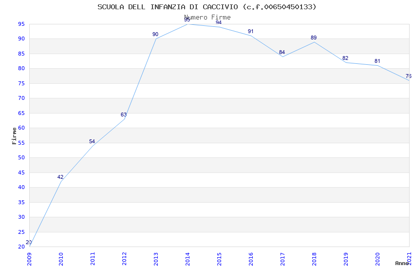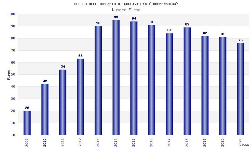 | Anno | Firme | Importi | Media | Naz. | Reg. | Prov. | Comu. |