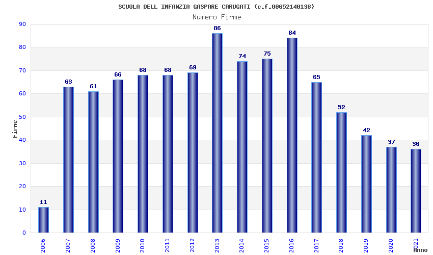 | Anno | Firme | Importi | Media | Naz. | Reg. | Prov. | Comu. |