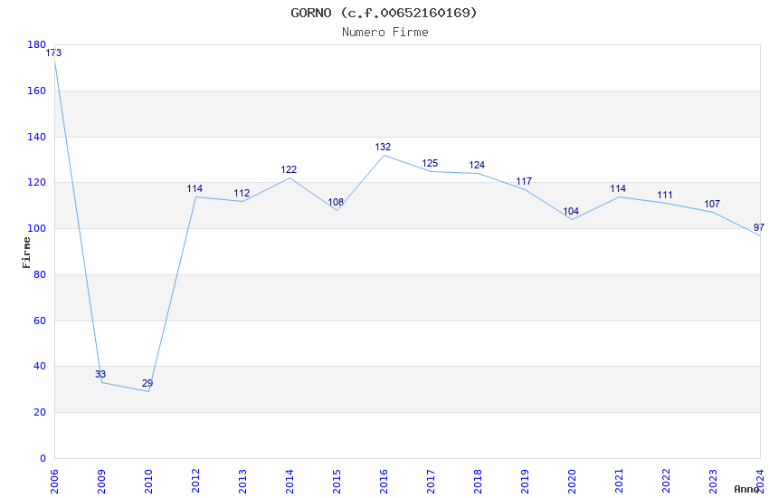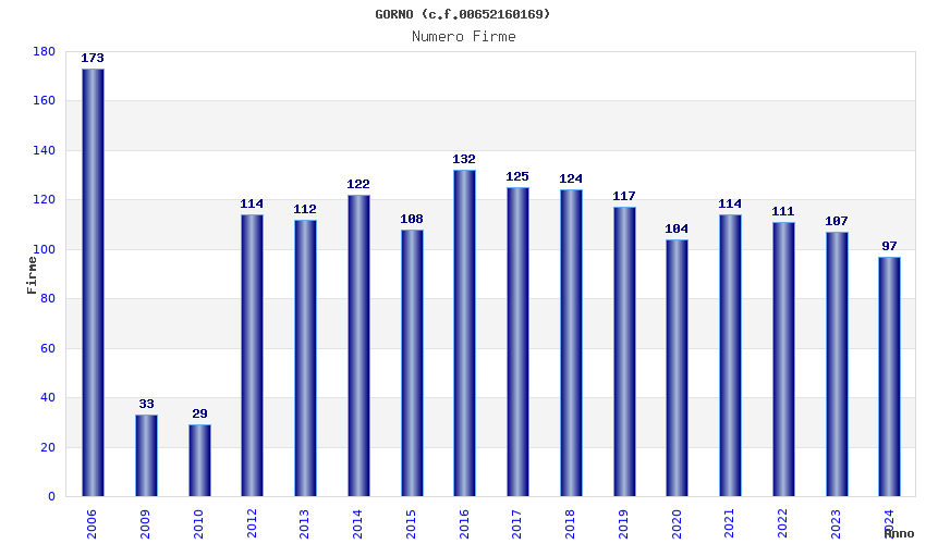 | Anno | Firme | Importi | Media | Naz. | Reg. | Prov. | Comu. |