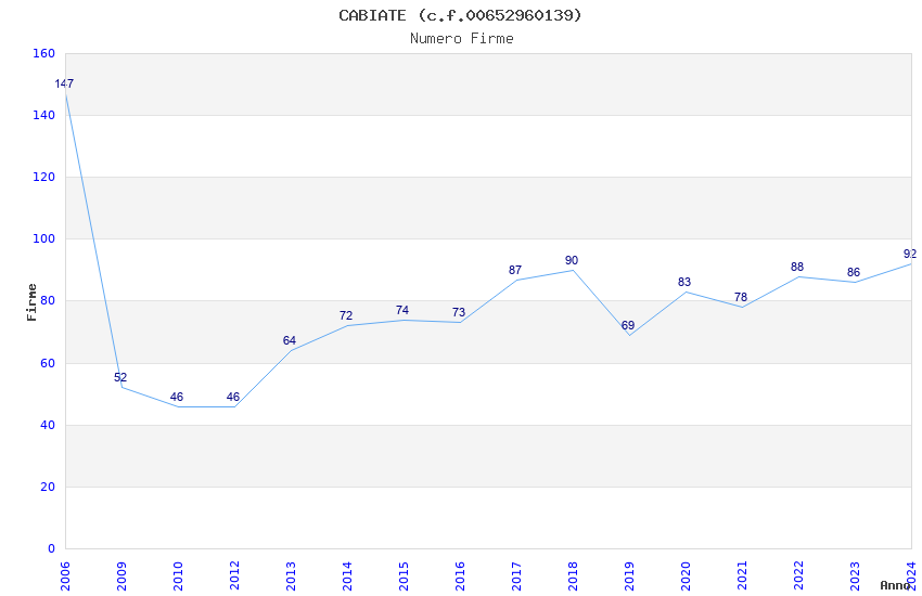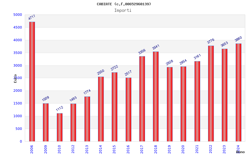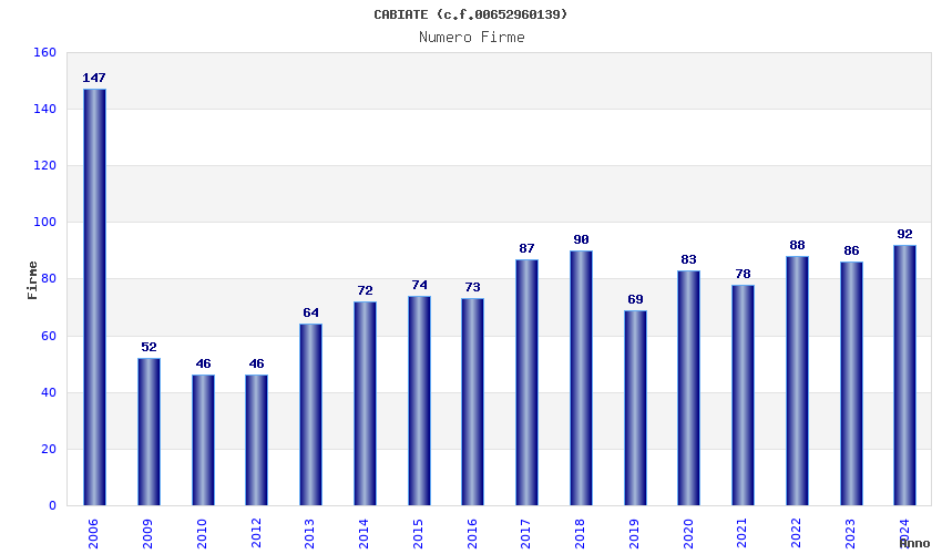 | Anno | Firme | Importi | Media | Naz. | Reg. | Prov. | Comu. |