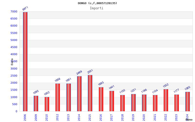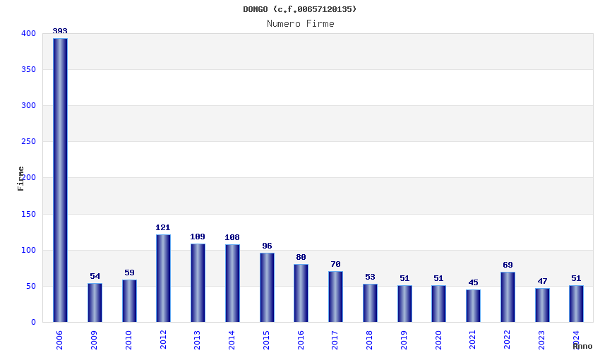 | Anno | Firme | Importi | Media | Naz. | Reg. | Prov. | Comu. |