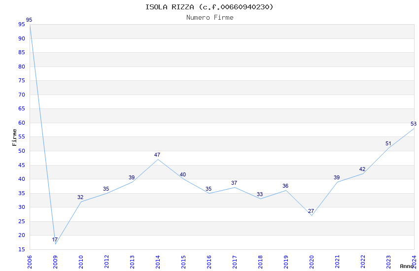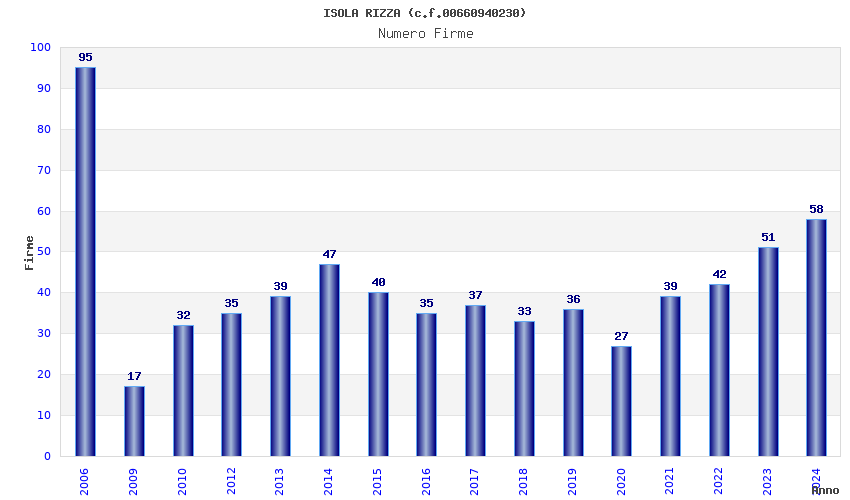 | Anno | Firme | Importi | Media | Naz. | Reg. | Prov. | Comu. |