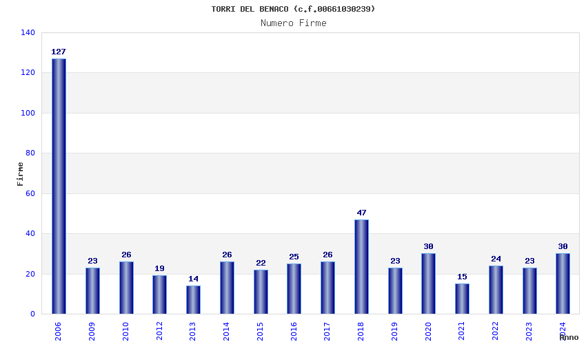 | Anno | Firme | Importi | Media | Naz. | Reg. | Prov. | Comu. |