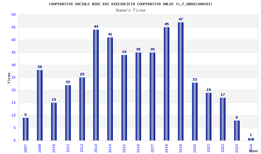 | 2019 | 47 | 627,93 | 13,36 | 42.782 | 3.999 | 163 | 3 |