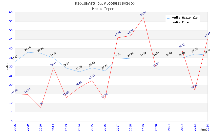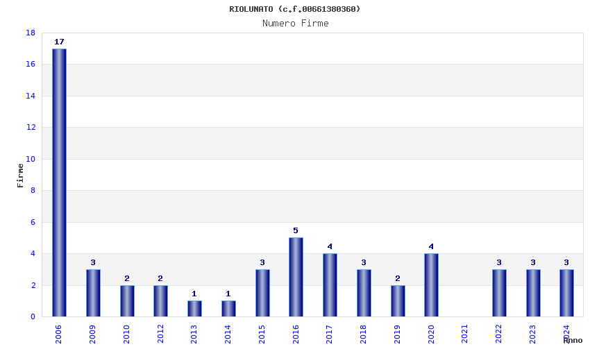 | Anno | Firme | Importi | Media | Naz. | Reg. | Prov. | Comu. |