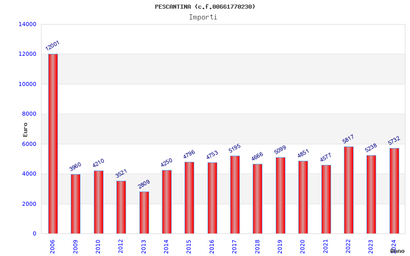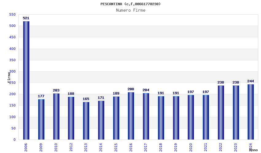| Anno | Firme | Importi | Media | Naz. | Reg. | Prov. | Comu. |