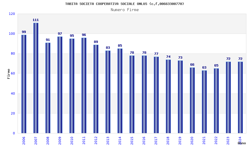 | Anno | Firme | Importi | Media | Naz. | Reg. | Prov. | Comu. |