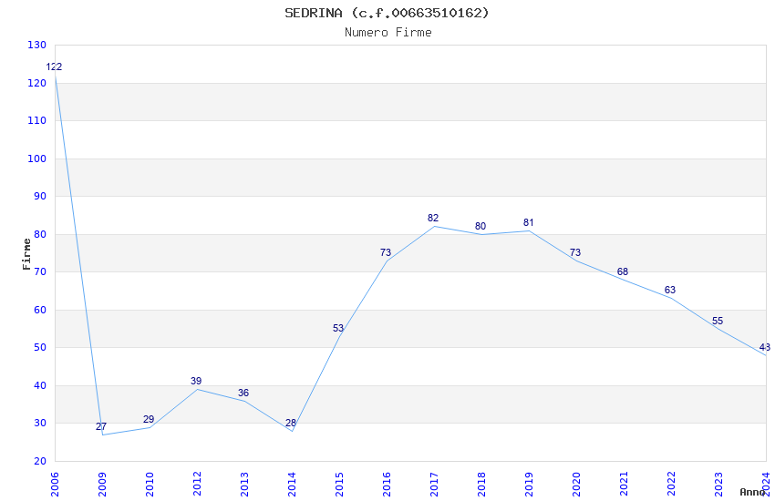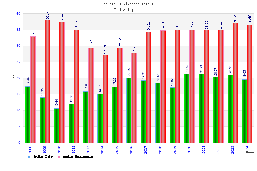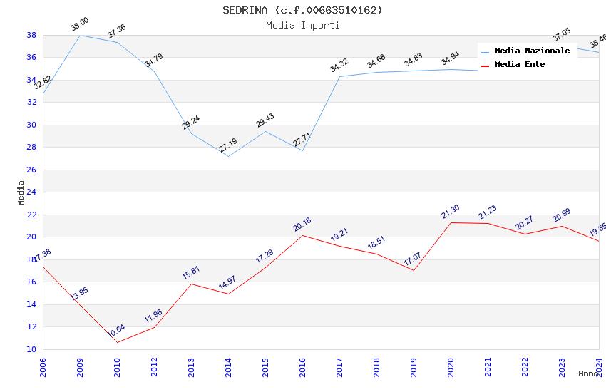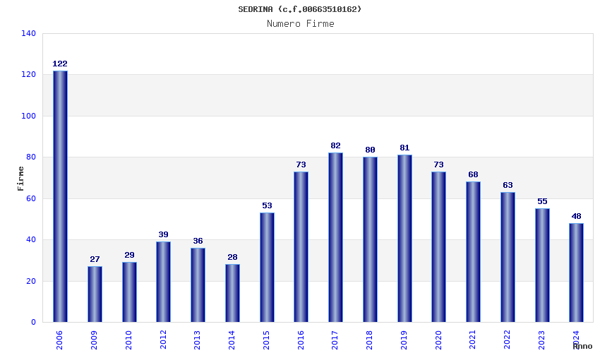 | Anno | Firme | Importi | Media | Naz. | Reg. | Prov. | Comu. |