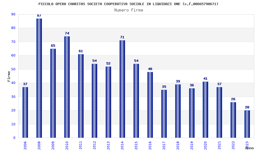 | Anno | Firme | Importi | Media | Naz. | Reg. | Prov. | Comu. |