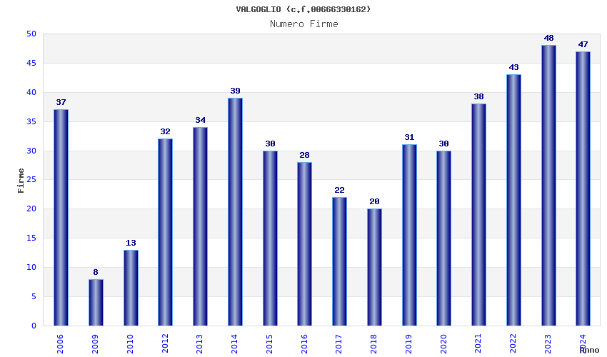 Anno Firme Importi Media Naz. Reg. Prov. Comu.