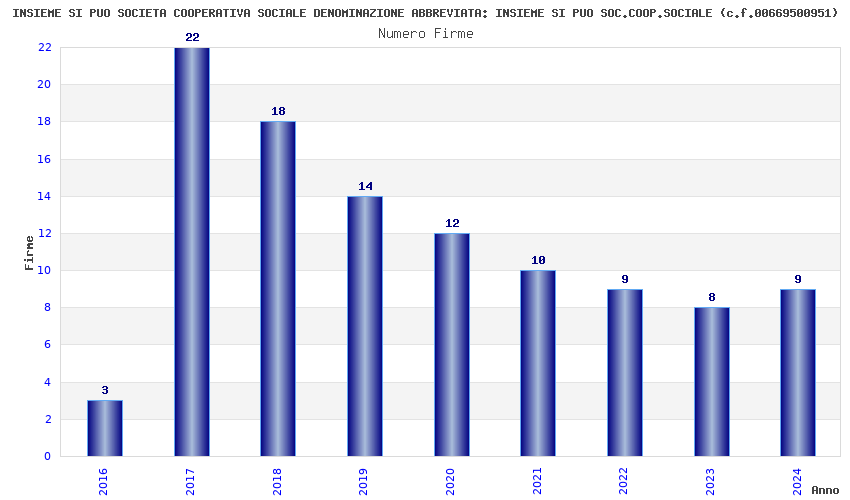 | Anno | Firme | Importi | Media | Naz. | Reg. | Prov. | Comu. |