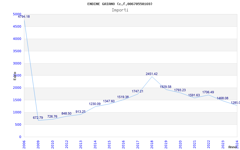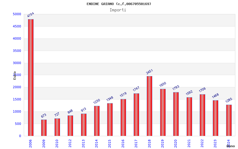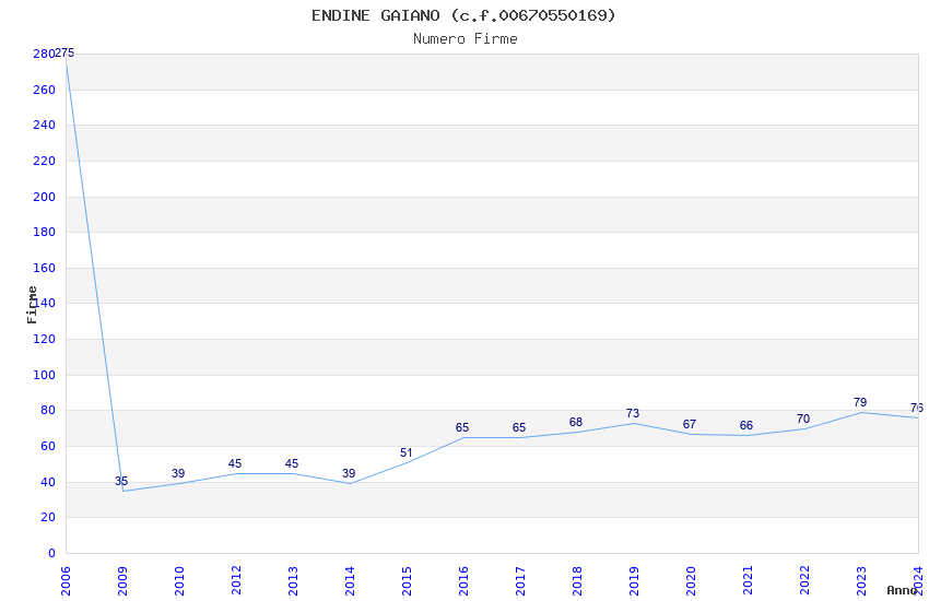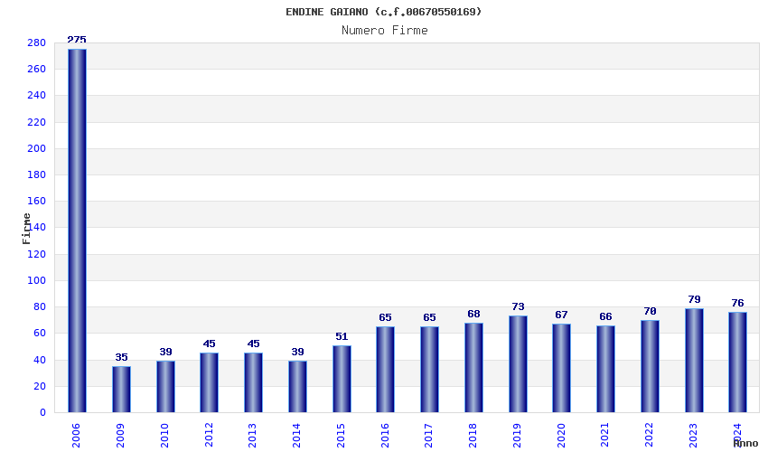| Anno | Firme | Importi | Media | Naz. | Reg. | Prov. | Comu. |