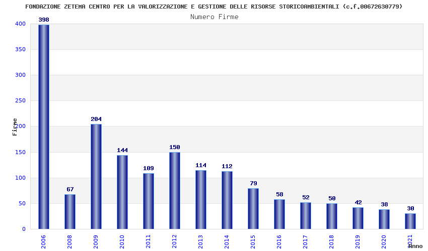 | Anno | Firme | Importi | Media | Naz. | Reg. | Prov. | Comu. |