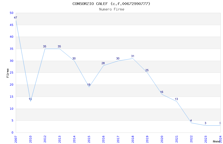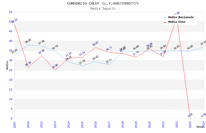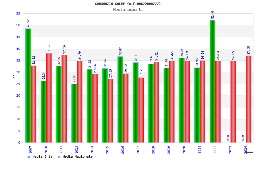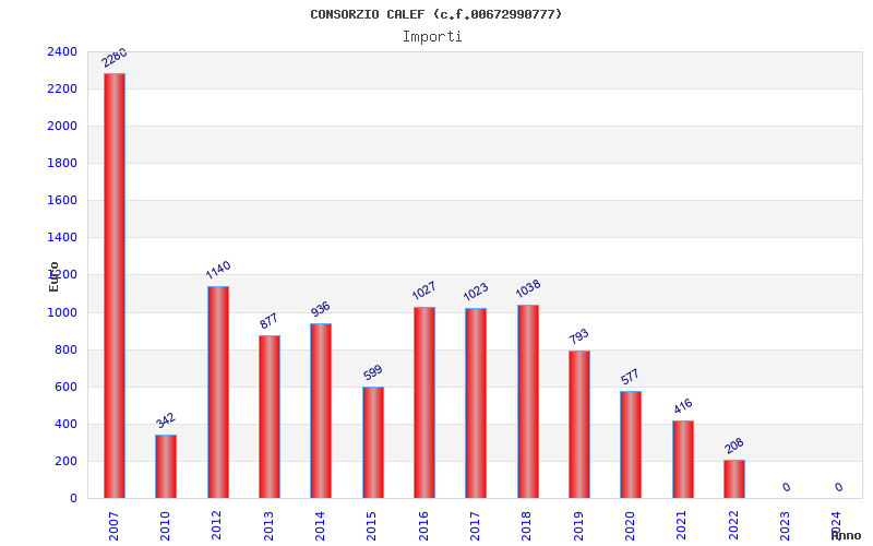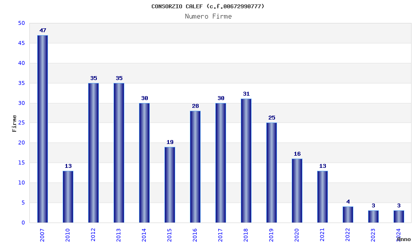 | Anno | Firme | Importi | Media | Naz. | Reg. | Prov. | Comu. |