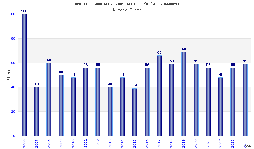 | Anno | Firme | Importi | Media | Naz. | Reg. | Prov. | Comu. |