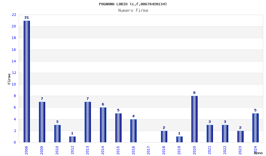 | Anno | Firme | Importi | Media | Naz. | Reg. | Prov. | Comu. |