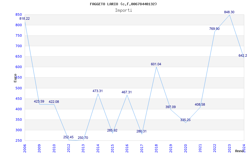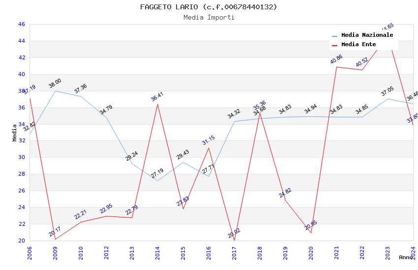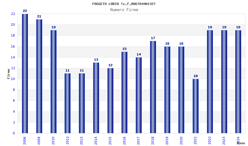| Anno | Firme | Importi | Media | Naz. | Reg. | Prov. | Comu. |