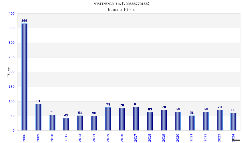 Anno Firme Importi Media Naz. Reg. Prov. Comu.
