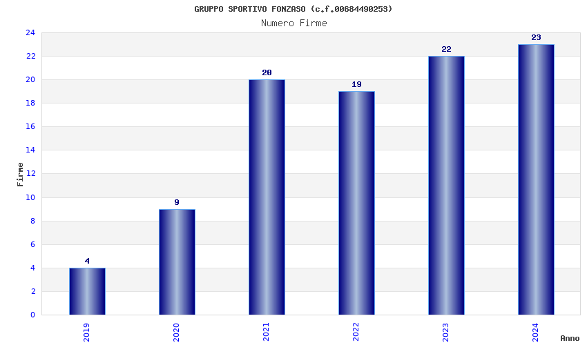 | Anno | Firme | Importi | Media | Naz. | Reg. | Prov. | Comu. |