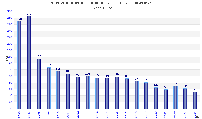 | Anno | Firme | Importi | Media | Naz. | Reg. | Prov. | Comu. |