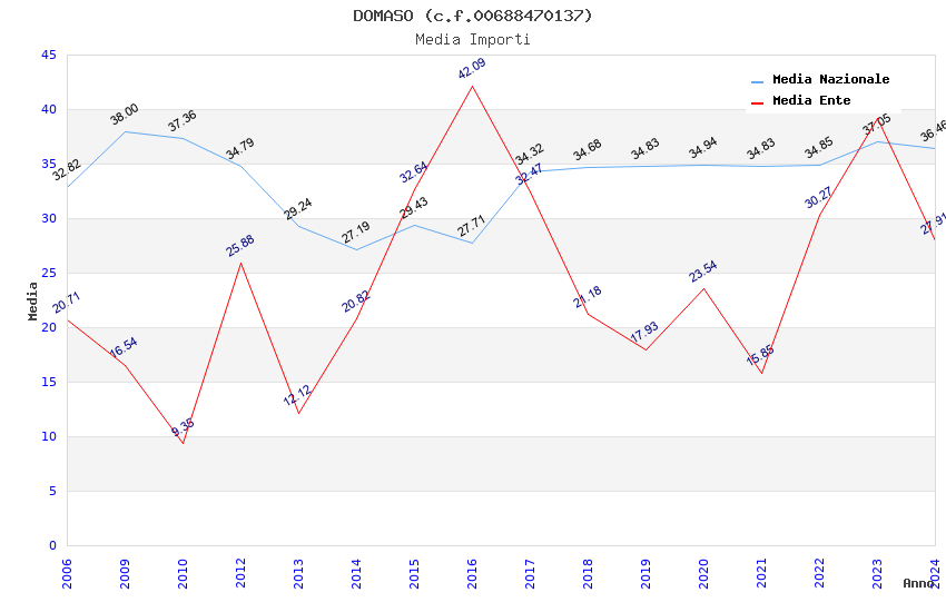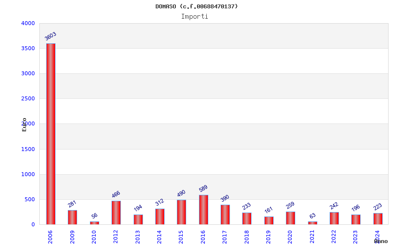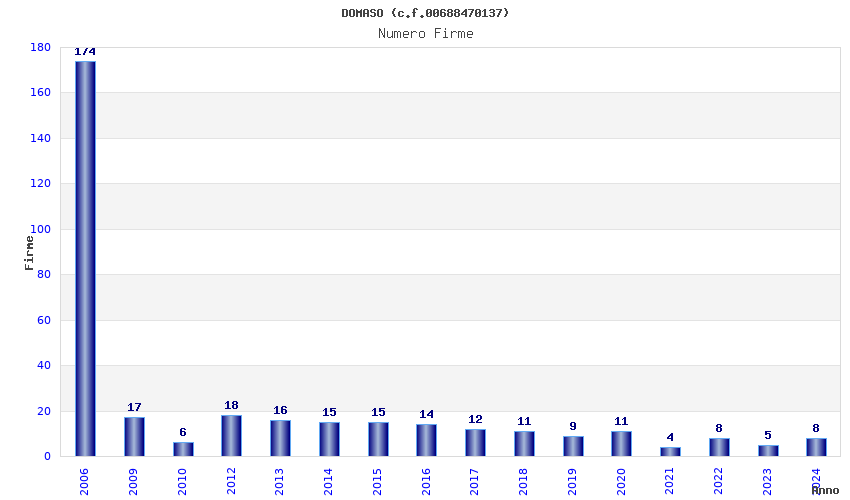 | Anno | Firme | Importi | Media | Naz. | Reg. | Prov. | Comu. |