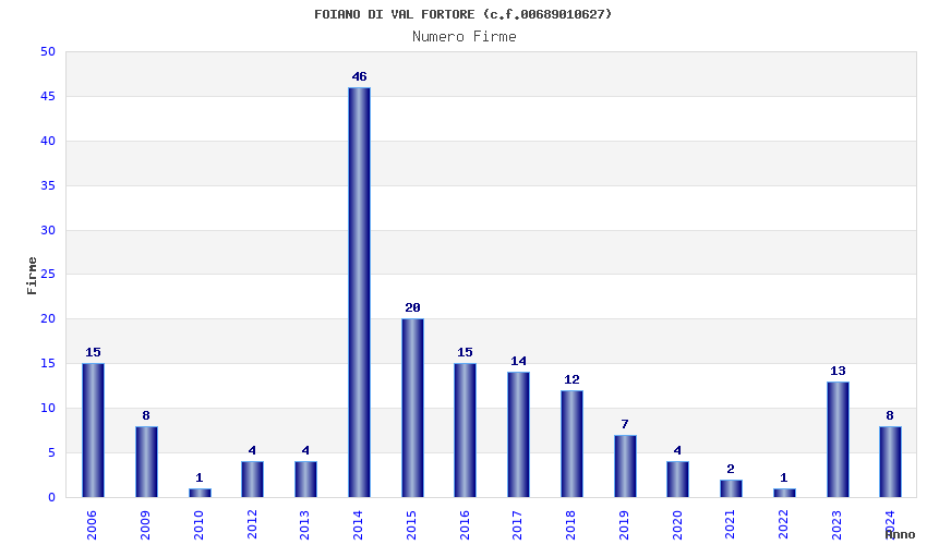 Anno Firme Importi Media Naz. Reg. Prov. Comu.