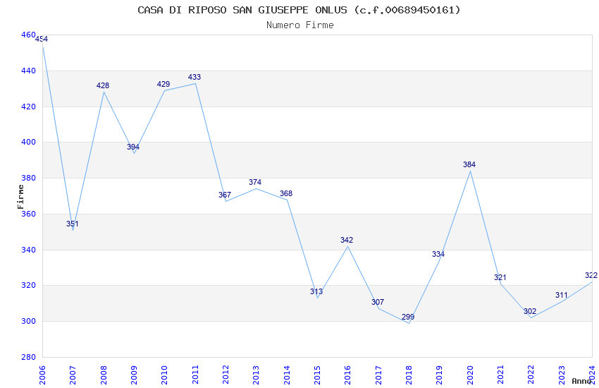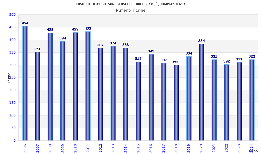 | Anno | Firme | Importi | Media | Naz. | Reg. | Prov. | Comu. |