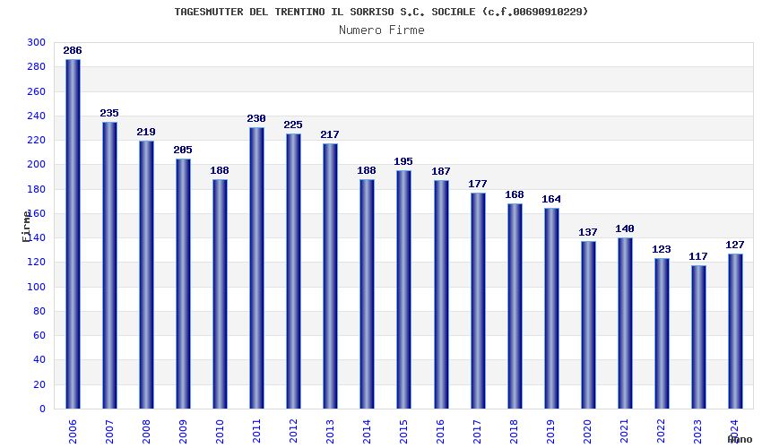 | 2006 | 286 | 6.690,03 | 23,39 | 6.460 | 110 | 50 | 23 |