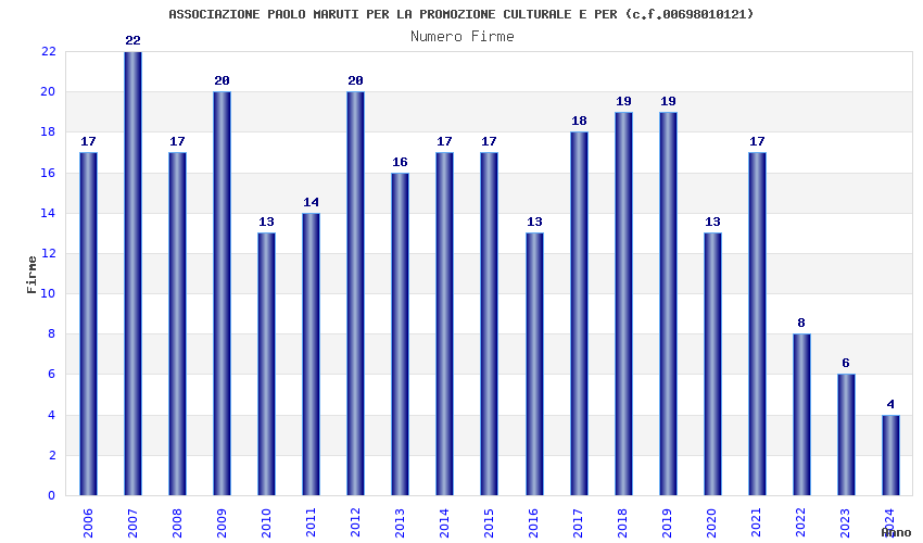 Anno Firme Importi Media Naz. Reg. Prov. Comu.