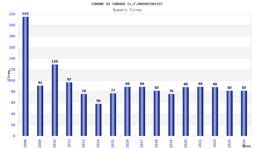 Anno Firme Importi Media Naz. Reg. Prov. Comu.