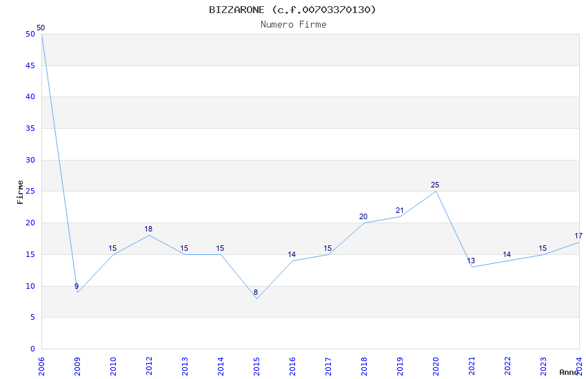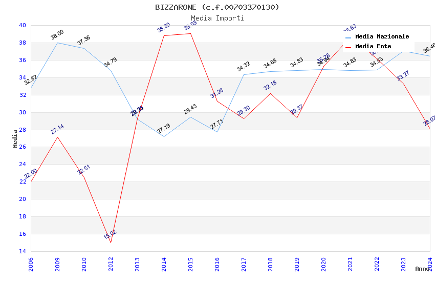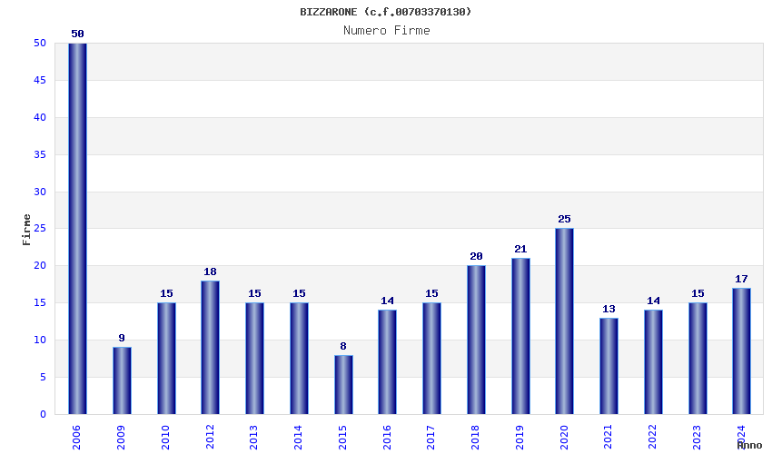 | Anno | Firme | Importi | Media | Naz. | Reg. | Prov. | Comu. |