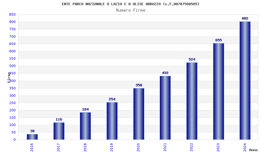 | Anno | Firme | Importi | Media | Naz. | Reg. | Prov. | Comu. |