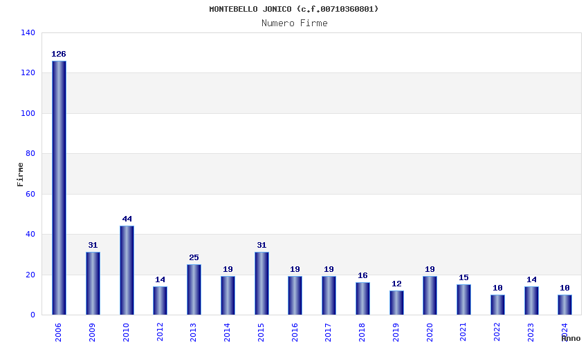 | Anno | Firme | Importi | Media | Naz. | Reg. | Prov. | Comu. |