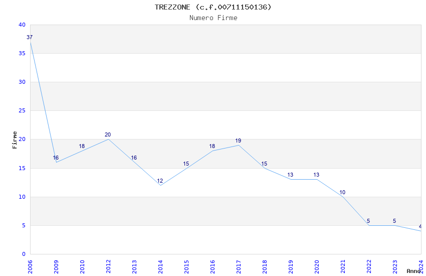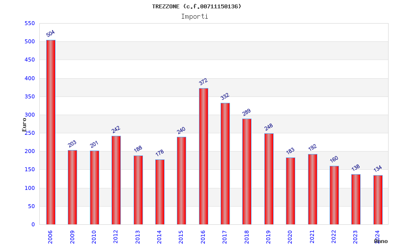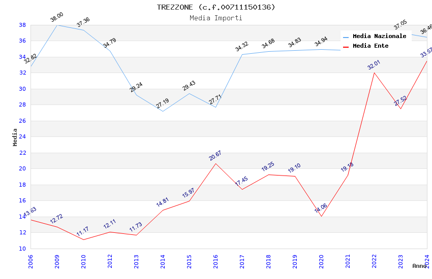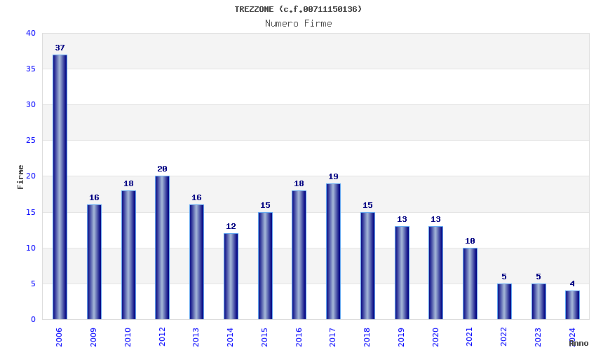 | Anno | Firme | Importi | Media | Naz. | Reg. | Prov. | Comu. |
