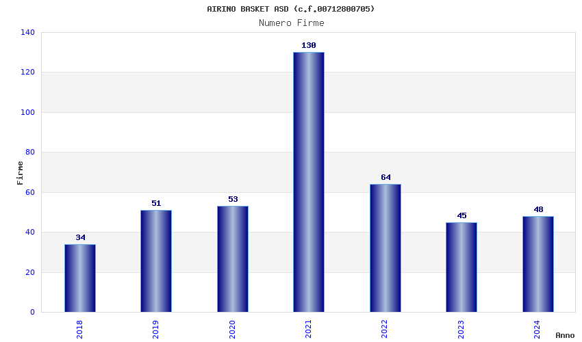 | 2021 | 130 | 3.214,23 | 24,72 | 16.577 | 58 | 42 | 10 |