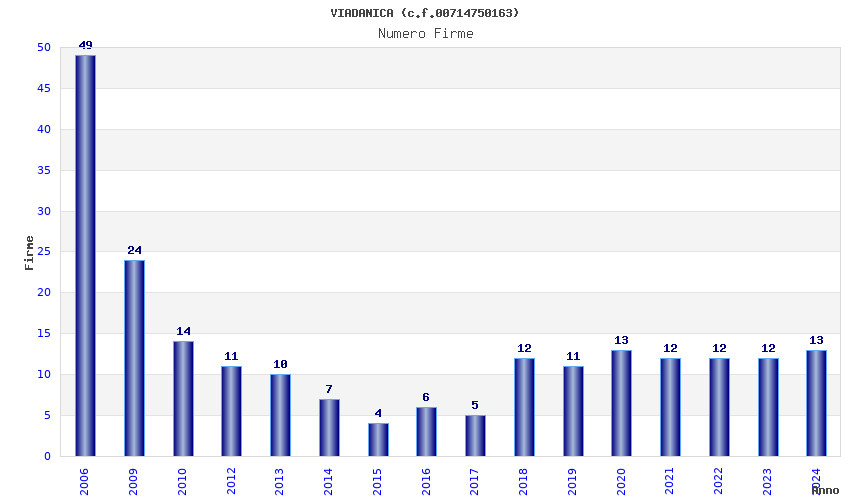 Anno Firme Importi Media Naz. Reg. Prov. Comu.
