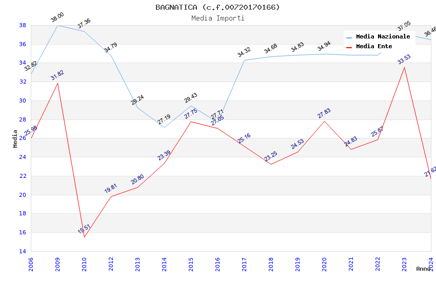 | Anno | Firme | Importi | Media | Naz. | Reg. | Prov. | Comu. |