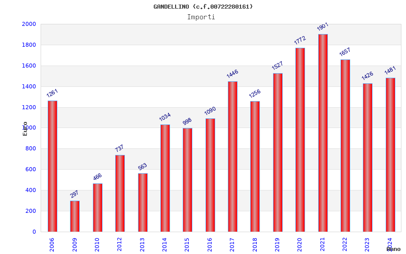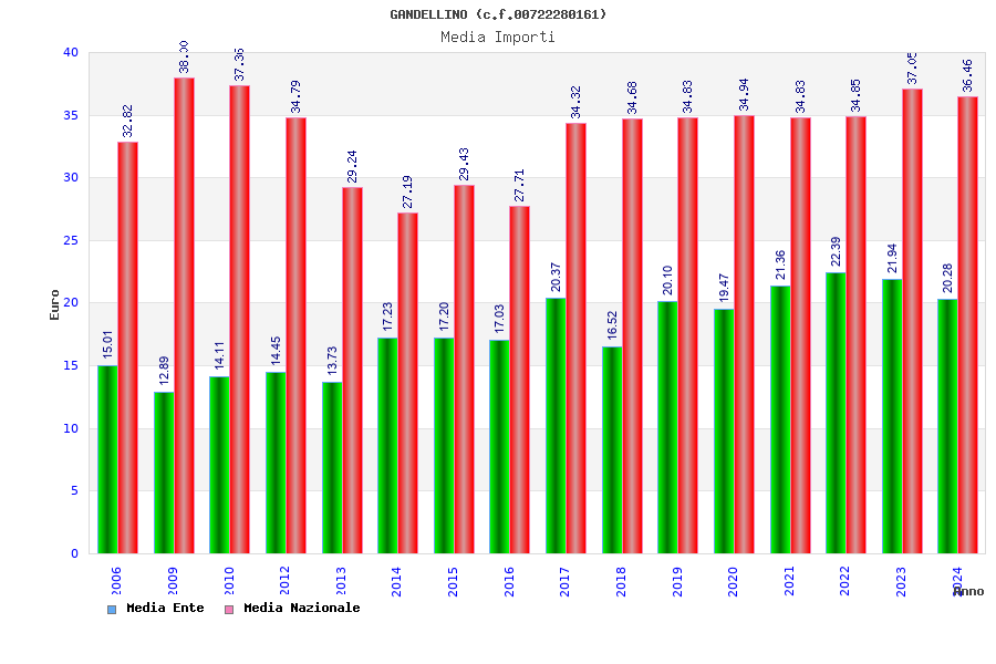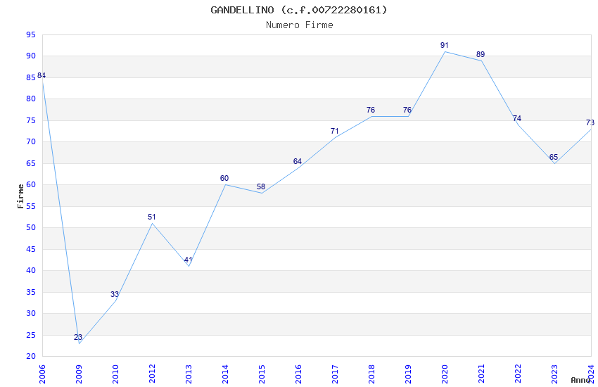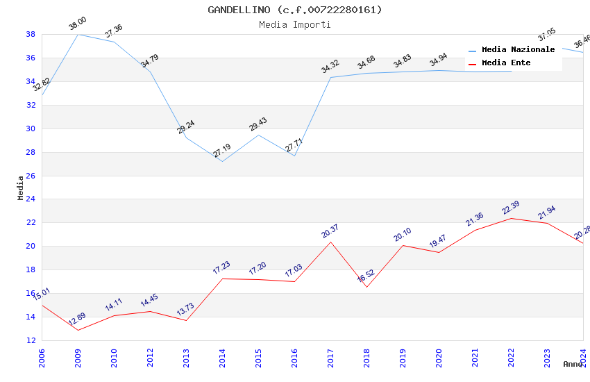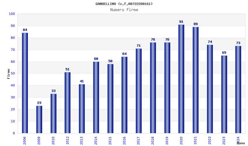 | Anno | Firme | Importi | Media | Naz. | Reg. | Prov. | Comu. |