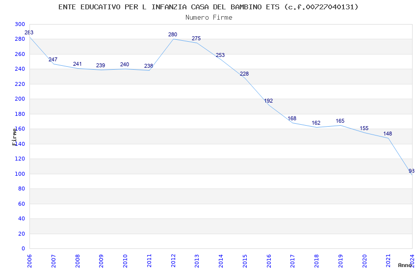 | Anno | Firme | Importi | Media | Naz. | Reg. | Prov. | Comu. |