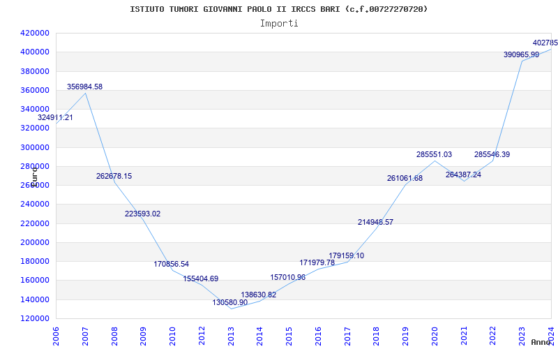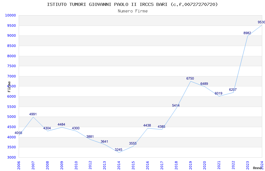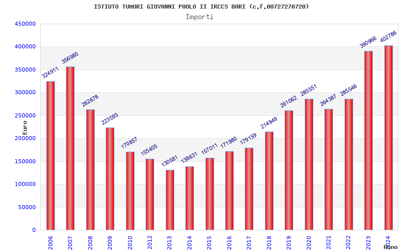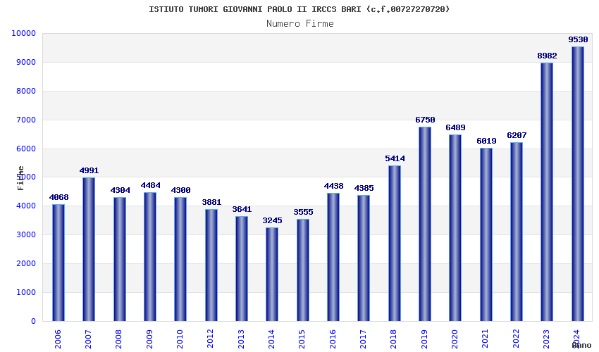 | Anno | Firme | Importi | Media | Naz. | Reg. | Prov. | Comu. |