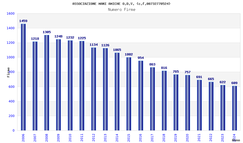 | Anno | Firme | Importi | Media | Naz. | Reg. | Prov. | Comu. |