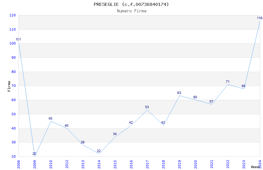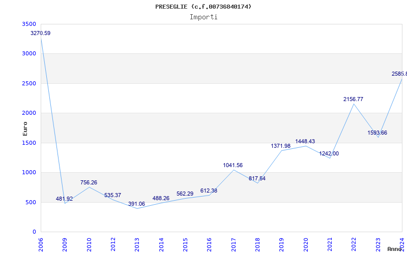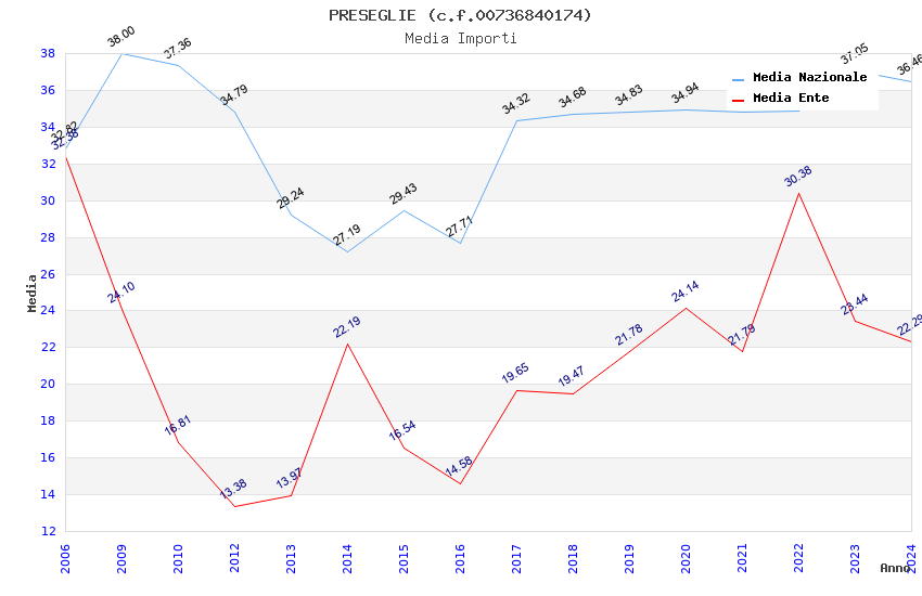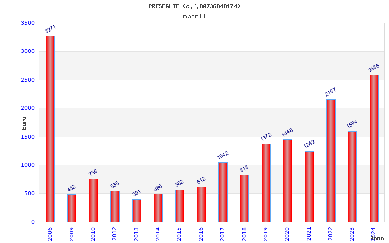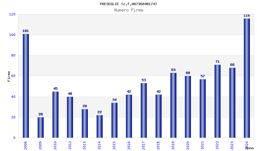 | Anno | Firme | Importi | Media | Naz. | Reg. | Prov. | Comu. |