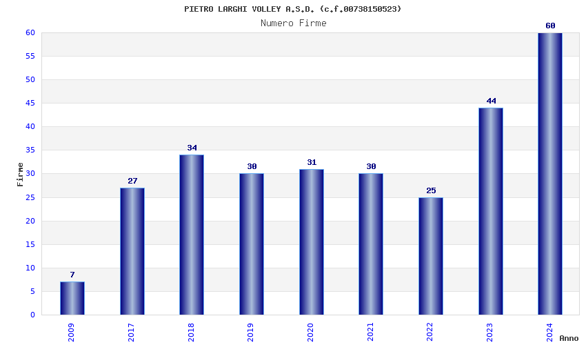 | Anno | Firme | Importi | Media | Naz. | Reg. | Prov. | Comu. |