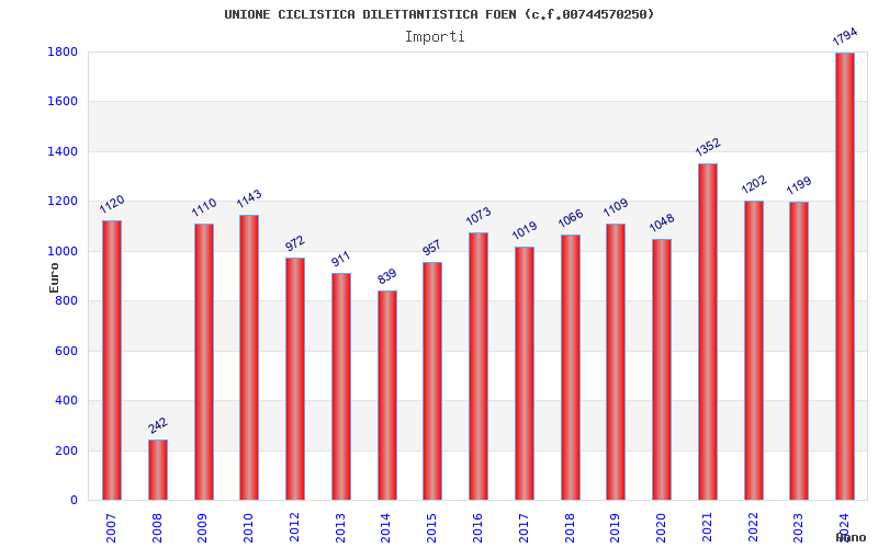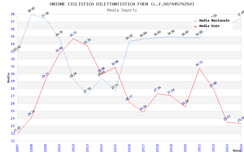 | Anno | Firme | Importi | Media | Naz. | Reg. | Prov. | Comu. |