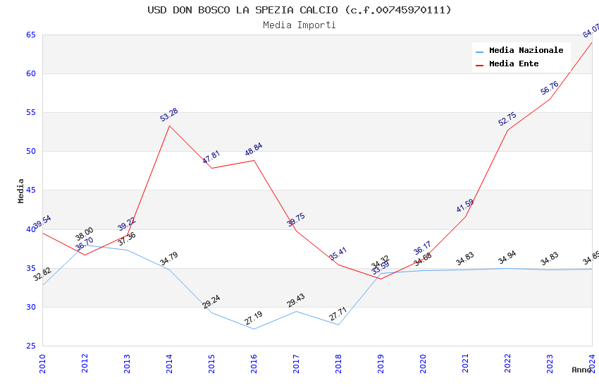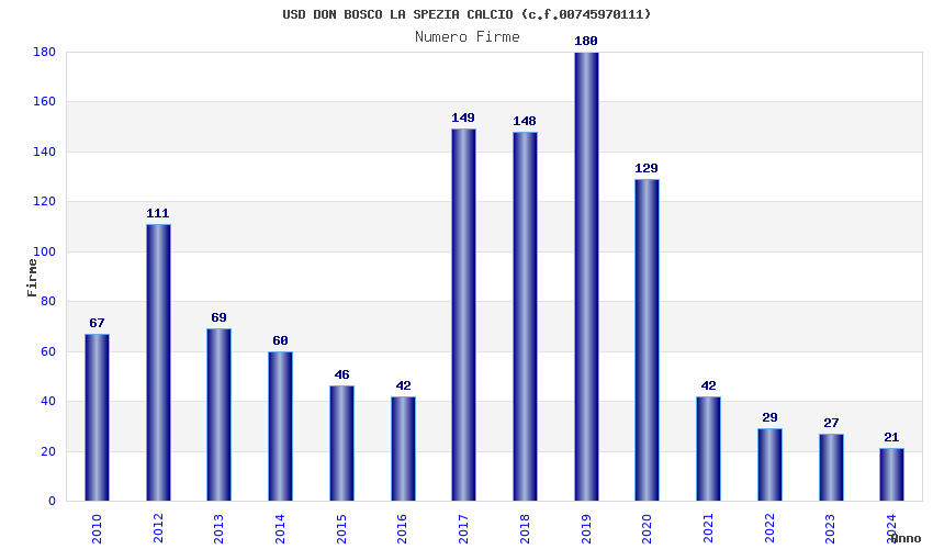 | Anno | Firme | Importi | Media | Naz. | Reg. | Prov. | Comu. |