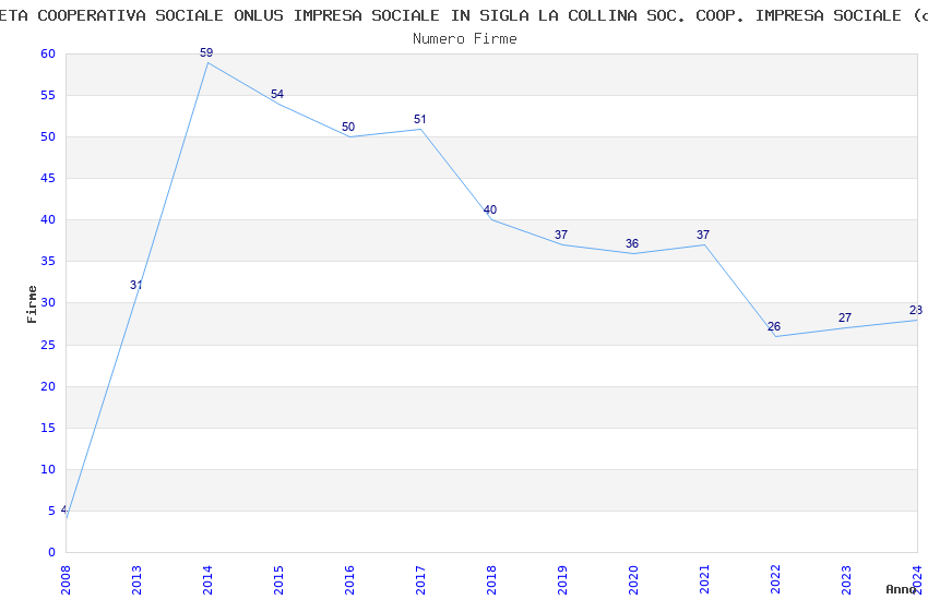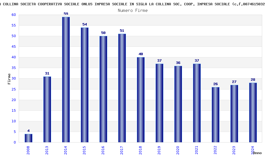 | Anno | Firme | Importi | Media | Naz. | Reg. | Prov. | Comu. |
