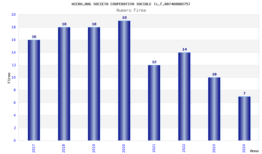 | Anno | Firme | Importi | Media | Naz. | Reg. | Prov. | Comu. |