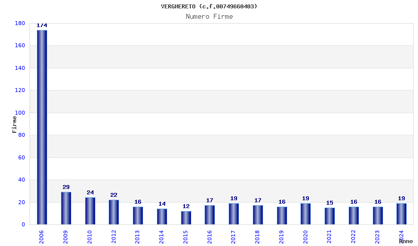 | Anno | Firme | Importi | Media | Naz. | Reg. | Prov. | Comu. |